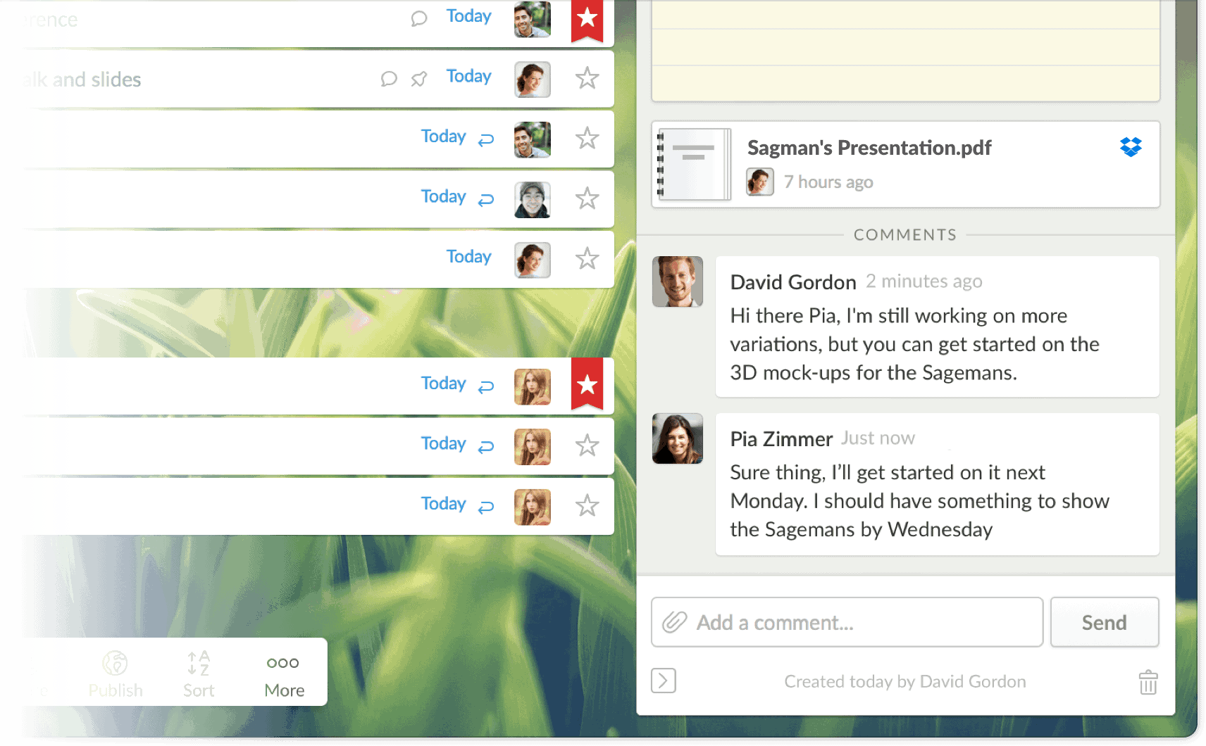 Inbox – это обычный привычный нам режим с папкой входящих сообщений. Настолько привычный, что здесь просто нечему удивляться – просто вся почта в одном месте. А вот формат Attachments уже вызывает больше интереса. Этот режим позволяет не только пользоваться многими приложениями типа DropBox, но и просматривать все вложенные файлы, без необходимости открывать письмо.