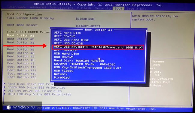 - После этого зайдите в биос и назначьте это устройство устройством запуска.