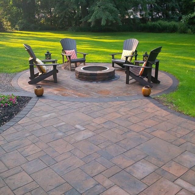 Отличным приемом создания живописного местечка с кострищем во дворе дома станет оригинальное покрытие самой площадки