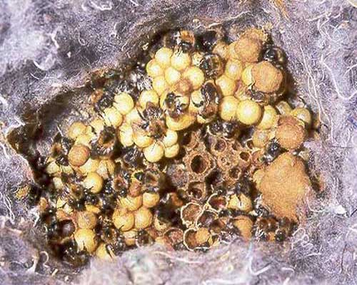 - Гнезда располагаются близко к земле, подо мхом или между камнями и состоят из сот, сделанных из грубого воска или пустых коконов.