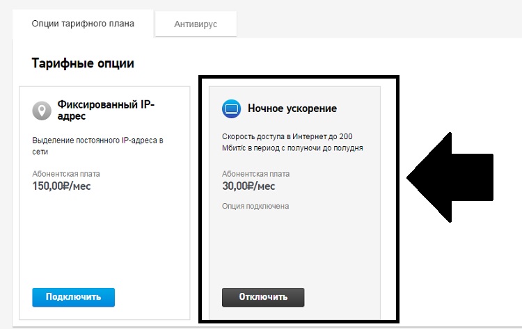 Дополнительные функции, вроде «ночного ускорения» или пакетов каналов для телевидения, изначально, в 99% случаев подключаются на бесплатной основе. Только потом, через 2-3 месяца промо-период может подойти к концу. И только тогда в квитанции вы увидите строчку с пакетом каких-то услуг или каналов для Интерактивного ТВ — до этого она может не отображаться там, т.к. за неё не начислялись деньги.