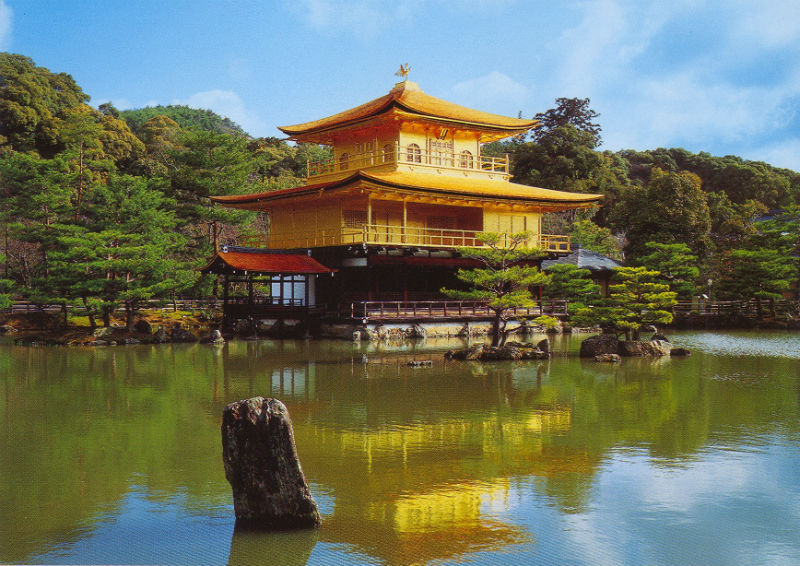 Японию сложно представить без таких достопримечательностей, как синтоистские и буддистские храмы. Эти узнаваемые строения представляют собой образец чистоты, простоты и гармонии. Важнейшими культовыми местами страны являются храмы-близнецы Гинкакудзи и Кинкакудзи. «Золотой павильон» Кинкакудзи, стоящий на берегу водоема, был сожжен в 1950 году фанатичным монахом, но полностью восстановлен. Храм выбран символом Киото. Его близнец, «Серебряный павильон» Гинкакудзи, строился как место отдыха сёгуна. Незаконченный образ храма отражает главные аспекты японского представления о непостоянстве, скоротечности и близости к природе.