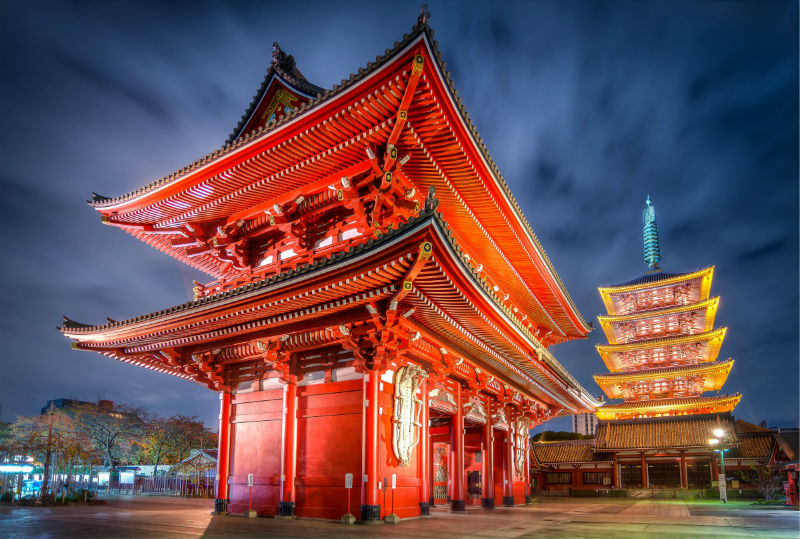 Главной буддийской достопримечательностью Токио считается храм Асакуса Каннон, строительство которого началось еще в VII веке. К сожалению, основной зал, главные ворота и пятиярусная пагода были разрушены в годы Второй Мировой Войны, и сейчас в храмовом комплексе построены их копии. Храм Асакуса Каннон отличается особой пышностью и торжественностью, и многие туристы приходят сюда, чтобы получить предсказание, помолиться или прогуляться по живописным сувенирным лавочкам.