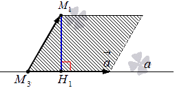 Следует отложить векторы a → = a x , a y , a z и M 3 M 1 → = x 1 - x 3 , y 1 - y 3 , z 1 - z 3 из точки М 3 , соединим и получим фигуру параллелограмма. М 1 Н 1 является высотой параллелограмма.