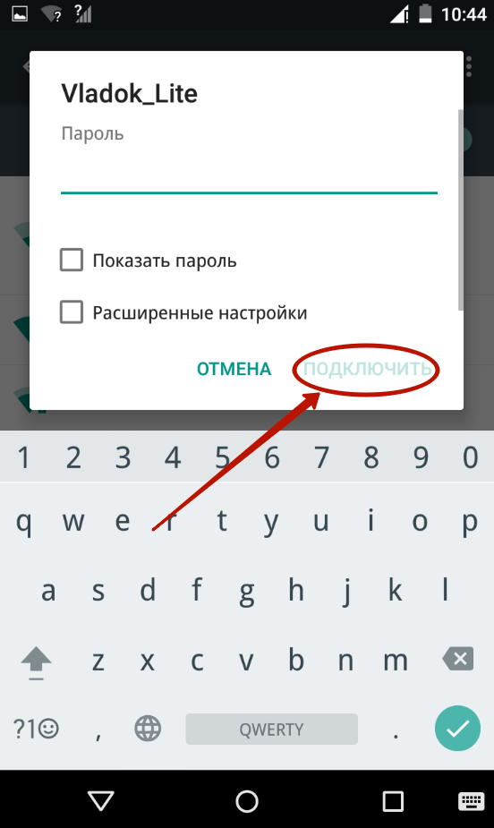 Шаг 5. Если сеть защищена, то введите пароль от неё. Для большего удобства вы можете поставить галочку около пункта «Показать пароль ». Когда закончите со вводом пароля - нажмите на кнопку «Подключить ».