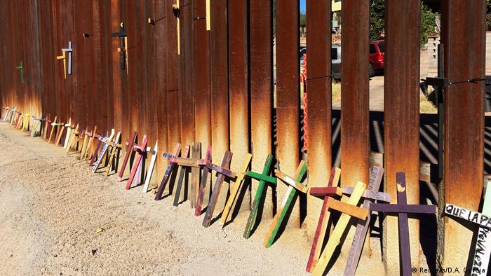 В мексиканском городе Ногалес около пограничного забора можно увидеть деревянные кресты: их кладут в память о тех, кто пытался попасть на территорию США, но погиб в ходе нелегального перехода