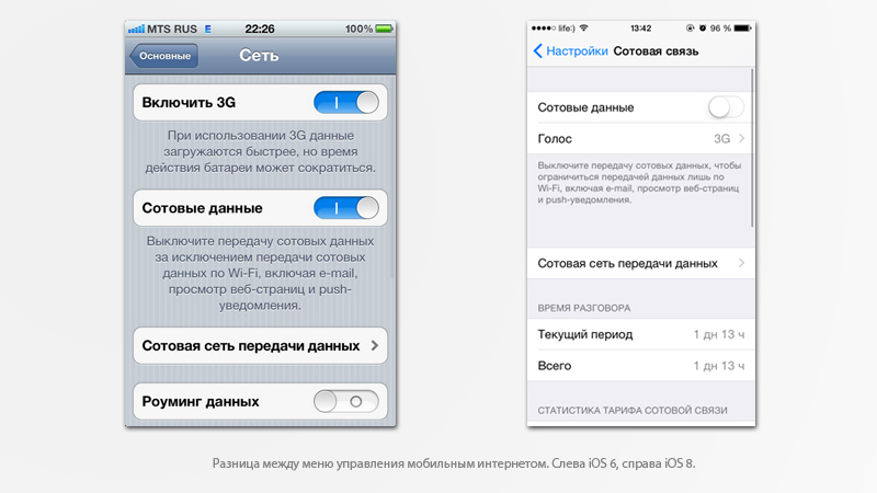 В более ранних версиях iOS (до 7 версии) этот пункт меню назывался «Связь» и был один ползунок включения 3G. Сейчас же появились сети 4G (LTE), поэтому Apple сделали одно подменю для трех видов мобильной связи. Ещё это такая особенность локализации. Так как включая конкретный вид связи, меняется качество аудио звонков и скорость Internet.
