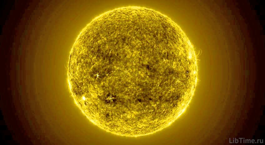 Теперь можно абсолютно точно утверждать, что Солнце — это типичная звезда (так называемый желтый карлик G-типа). Потому что вокруг него вращаются 8 планет, образующие вместе с ним Солнечную систему; оно самостоятельно излучает свет и тепло — средняя температура поверхности 5000-6000 K; состоит преимущественно из легких элементов, таких как водород и гелий — почти 99%, и всего лишь 1% составляют твердые вещества; на его поверхности постоянно протекают термоядерные реакции; и своими размерами оно превосходит в несколько раз любую планету Солнечной системы.