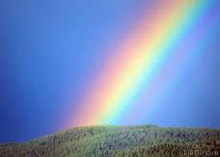 Представление о спектре можно получить по радуге после дождя. Она привлекает неуловимыми переходами от одного цвета к другому: от красного - через оранжевый, желтый, зеленый, голубой и синий - к фиолетовому.