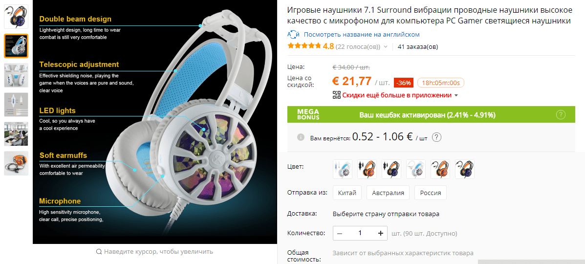 Как видно по приведенному под фото анализу цен, если делать покупки на AliExpress с кэшбэк-сервисом (позволяет вернуть часть от стоимости покупки вам на счет), можно сэкономить от 5 до 10 процентов от стоимости товара. В среднем, размер кэшбэка на АлиЭкспресс –3-6%. Но сейчас выплачивает двойной кэшбэк на первую покупку на AliExpress (с нового аккаунта или с которого не были сделаны покупки на AliExpress). А это до 9,83% от стоимости покупки. Обычный размер кэшбэка также щедрый – до 4,91%.