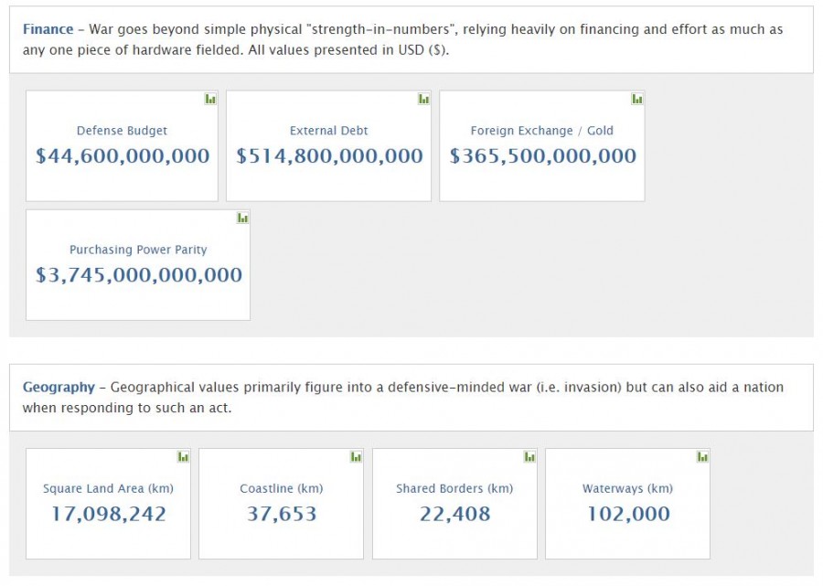 1. Ядерное оружие не учитывается (только обычные вооружения), но страны им обладающими получают некий бонус к рейтингу.