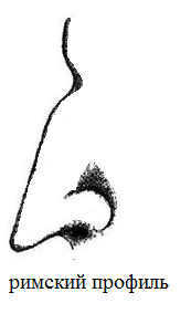 Римский нос может иметь горбатость, этой формой всегда отличались потомки римлян древнего рода. Если он имел приподнятую спинку его называли орлиным, но это не мешает иметь ему красивое строение. Римским профилем обладали многие известные личности - Юлий Цезарь, Ганрих IV, Карл V . В профиль хорошо видно, что голова и лицо таких людей имеет мужественный и внушительный вид.