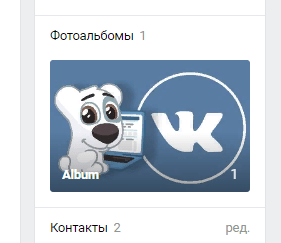 После того, как вы создадите новый альбом, блок переместить немного вверх (над контактами) и видоизменится.