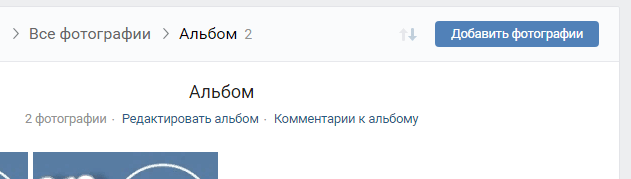 Помимо самого альбома, можно редактировать и его фото. Для этого нам нужно также открыть окно редактирования и спустится ниже, к фотографиям.