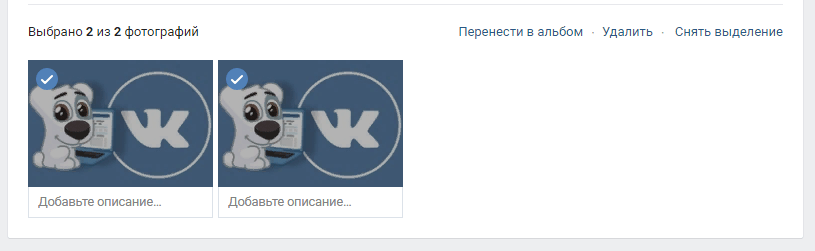 Также под каждой фотографией есть поле для добавления описания. А выделив несколько фотографий сразу, вы сможете массово переместить или удалить их.