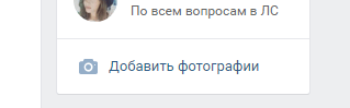 Теперь на странице группы появится новый блок – фотоальбомы. Изначально это будет кнопка «Добавить фотографии» под контактами.