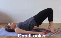 Позиция начала упражнения: займите положение лежа, колени держите под углом, стопы в упоре на полу. Делая вдох, поднимайте таз до выравнивания его с туловищем. На выдохе вернитесь в позицию начала упражнения. Сделайте 6 подъемов.