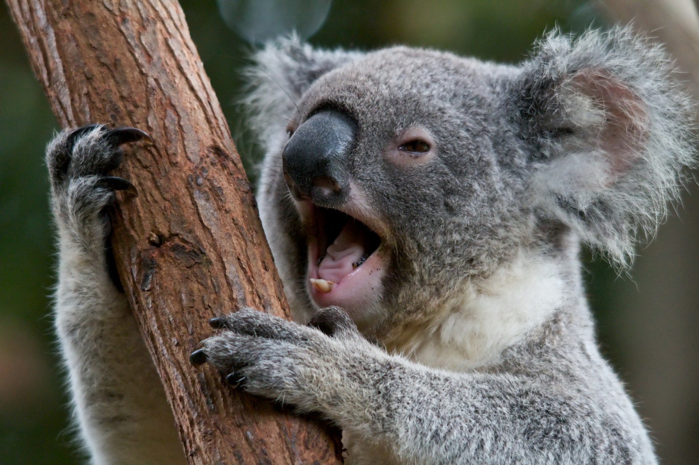 - Коала предпочитает спать на дереве, обхватив ствол цепкими лапами.