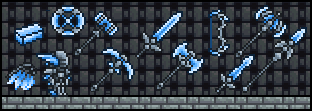 И когда количество новых предметов уже заставляет вашу руку дёргаться в сторону кнопки я сообщаю радостную весть - это был лишь контент пре-хардмода. А уж во второй половине игры раскрывается самая настоящая бездонная пропасть предметов: геодовый набор (делается из самоцветов каждого типа, соединённых вместе), драконий набор, титановый (не путать со стандартным титаниумным) и набор из плоти.