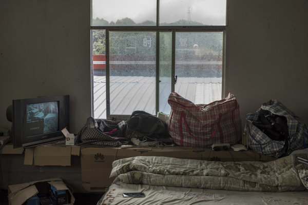 Подсобное помещение для отдыха рабочих на майнинг-ферме в провинции Гуйчжоу оборудовано монитором, показывающим происходщее в дата-центре
