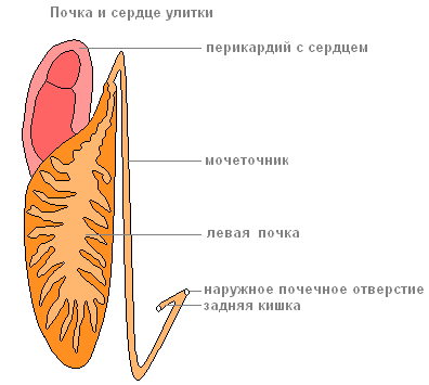 Выделительная система прудовика обыкновенного (рис. 58) включает одну почку с мочеточником, отрывающимся рядом с анальным отверс-тием.