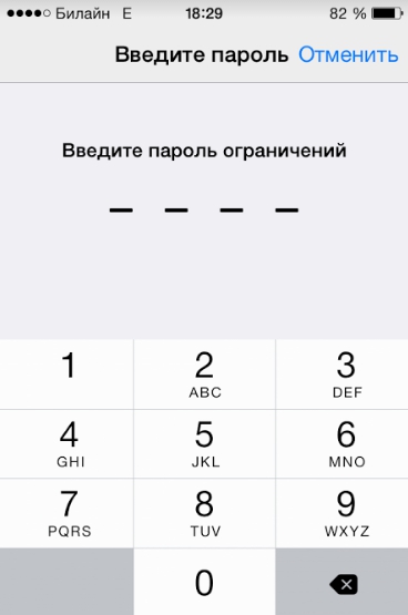 Шаг 2. Введите пароль, установленный ранее на ограничения различных действий на вашем устройстве.