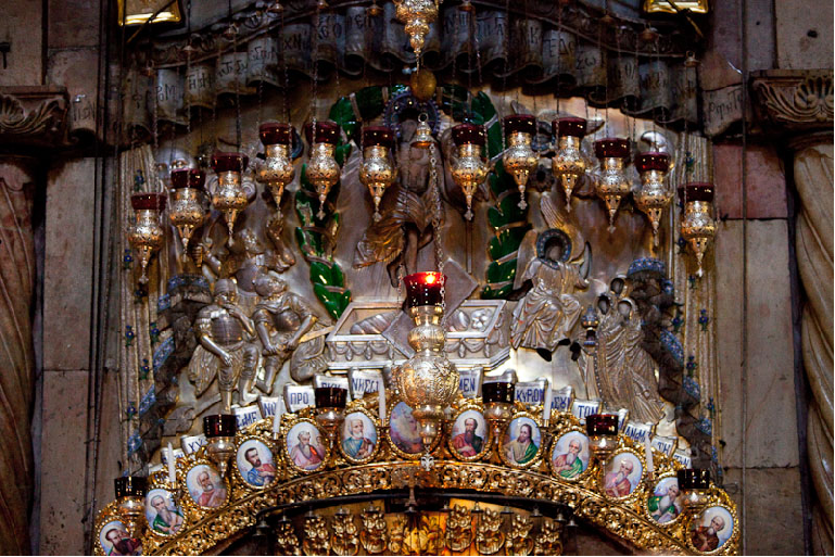 Лампады разных конфессий на Кувуклии Гроба Господня