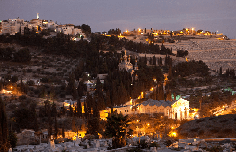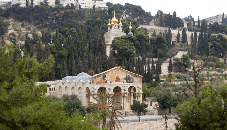 Монастырь Марии Магдалины в Гефсимании (на переднем плане – церковь всех Наций)