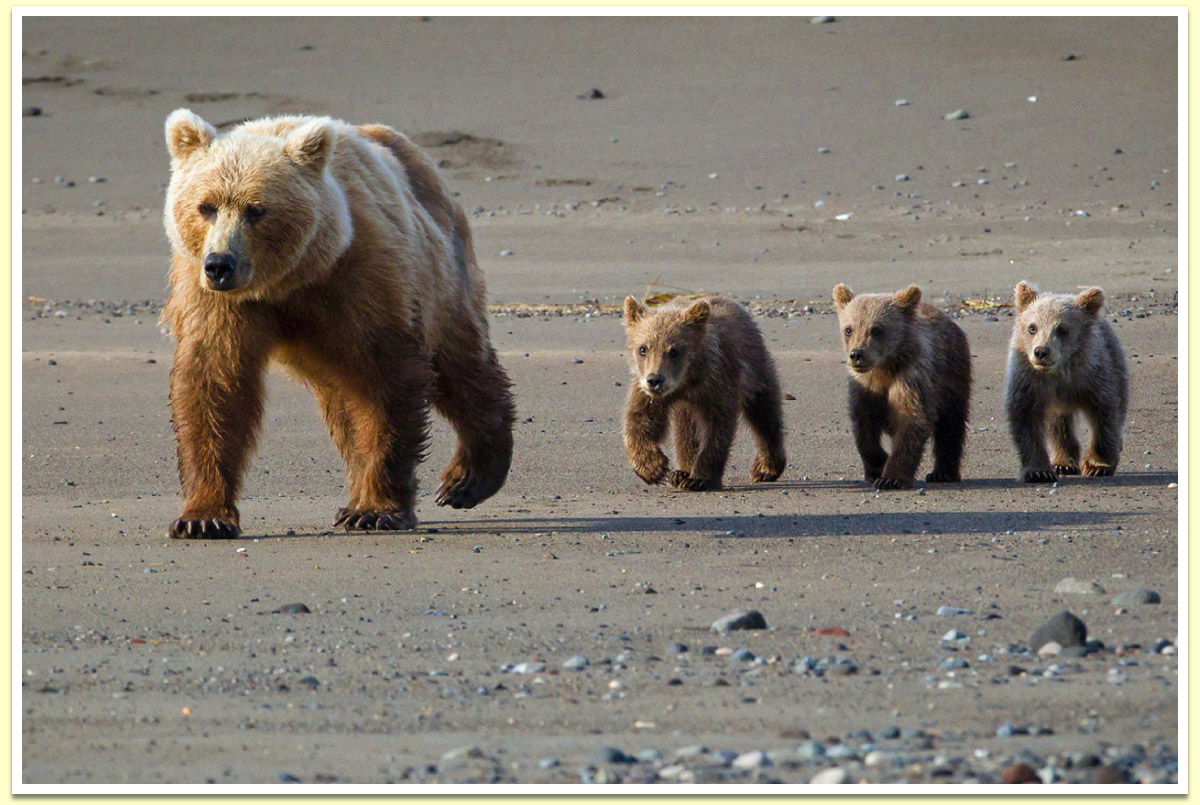 - Особенную опасность представляют медведицы, родившие детёнышей. Бурые медведи рожают в период с декабря по март, на свет появляется в среднем от 1 до 5 медвежат. Самки становятся агрессивными, так как их малыши довольно слабые, маленькие и беззащитные, нуждаются в материнской заботе, чтобы не погибнуть. Это нормальное явление почти для всех млекопитающих, самки которых рожают и растят детёнышей. Любой человек или любое другое существо воспринимается как угроза.