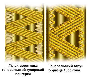 На рисунке левее показан галун, который носили генералы на погонах с мая 1854 до ноября 1855 года, правее, который был веден в 1855 и который сохранился и по сей день.
