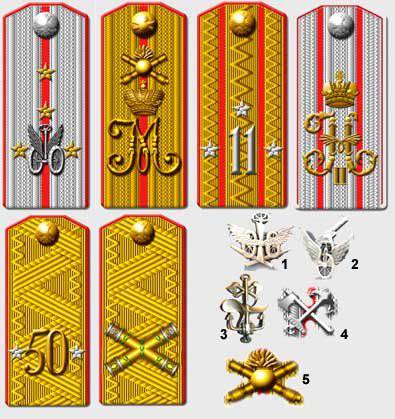 По примеру структуры пехоты различие в чинах для артиллерии можно представить схематично, выделив пять групп чинов.