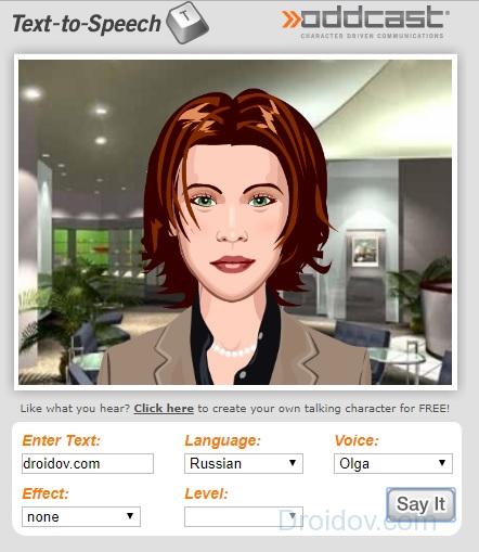 Oddcast – это довольно известная компания, которая занимается созданием интерактивных-компаньонов для различных брендов. Также у фирмы имеется свой собственный синтезатор речи, который можно использовать чтобы воспроизвести текст. Веб-утилита поддерживает около 30 языков. Большинство имеют несколько вариаций женского и мужского голоса. Программа способна воспроизвести текст величиной до 170 символов.