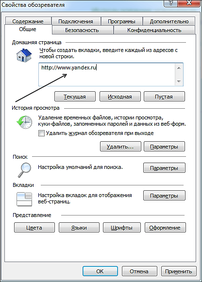 Как сделать Яндекс домашней страницей в Internet Explorer