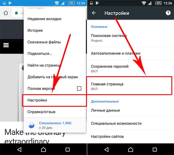 2. По умолчанию, у большинства пользователей уже включена эта функция, но многие производители смартфонов устанавливают в качестве домашней, свои сайты и сервисы (как и в моем примере).