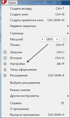 - переходим в настройки Опера;