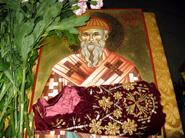 Препрославленный от Господа святителю и чудотворче Спиридоне! Ныне всечестную память твою празднующе, яко много могущему споспешествовати нам о прославльшем тя Христе, умильно вопием ти: избави нас от всяких бед и зол, да с благодарением зовем ти: