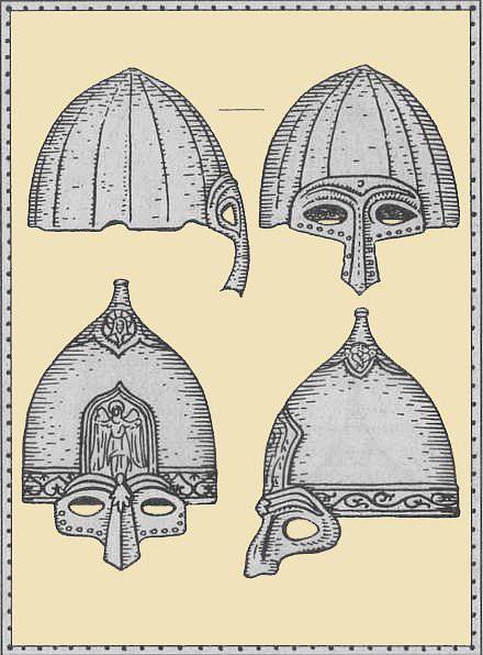 В те времена был распространен плавно изогнутый, вытянутый кверху шлем со стержнем наверху. Шлемов такой формы Западная Европа не знала совершенно, но они были широко распространены как в Передней Азии, так и на Руси.