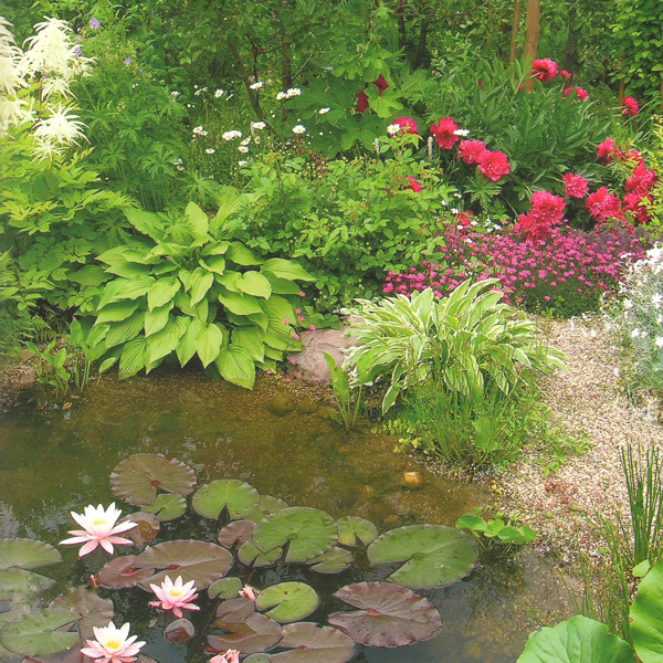 Для высадки по контуру водоема подойдет большинство влаголюбивых растений.