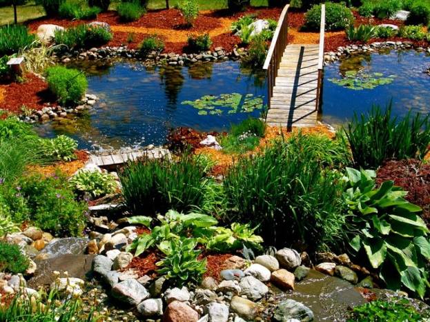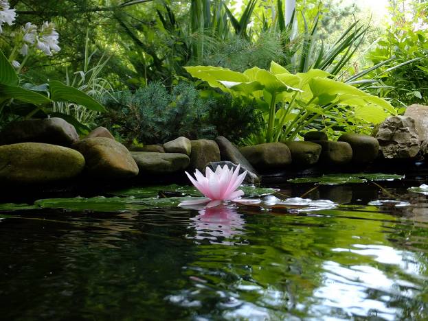 Помните и о том, что в водной экосистеме, где сосуществуют бок о бок различные микроорганизмы, водоросли и рыбы, водные растения должны занимать около половины водной глади. Вот несколько наиболее популярных растений для пруда.