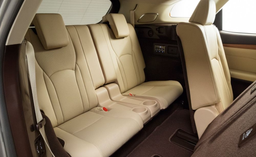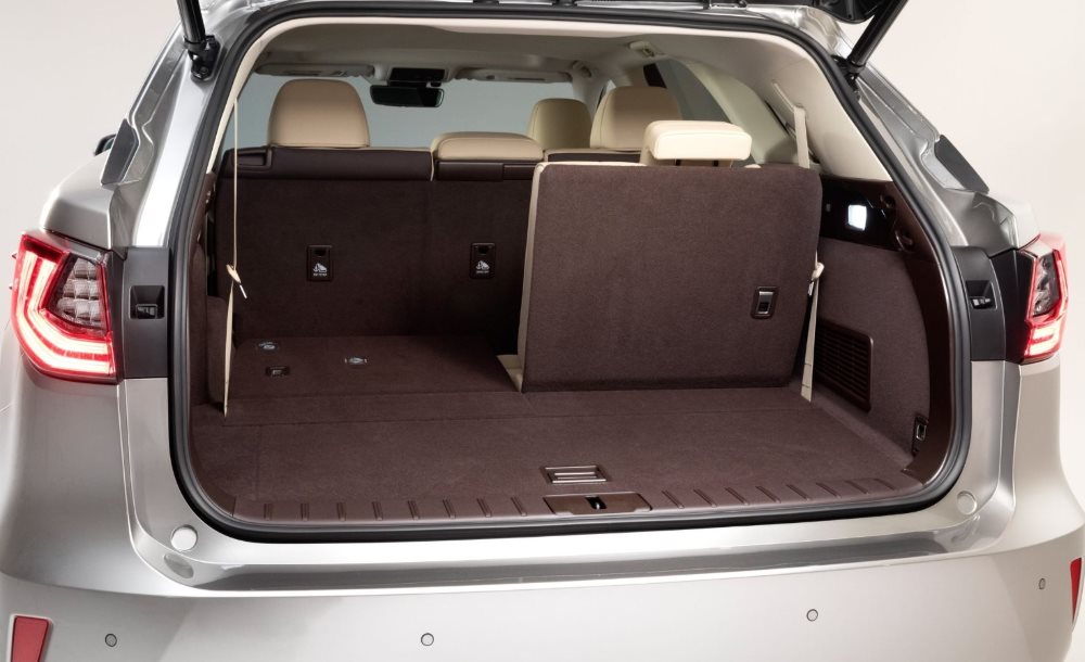 Базовая комплектация Lexus RX 350L 2018-2019 года предполагает установку электрической двери грузового отсека с возможностью бесконтактного открытия. Также автомобиль оснащается складываемой спинкой второго ряда кресел (40:20:40) и двумя сиденьями третьего ряда, для складывания которых надо нажать лишь одну кнопку. После опускания спинок последнего ряда сидений формируется ровная площадка для перевозки грузов.