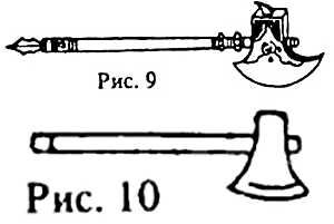 В наше время искусство боя на топорах медленно умирает, ной сейчас дровосеки с успехом пользуются топорами на длинной рукояти, удобными для обрубания сучьев (рис. 18).