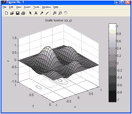 Здесь первая команда создает массив точек поверхности с помощью одного из ряда встроенных в ядро системы MATLAB готовых описаний таких поверхностей.