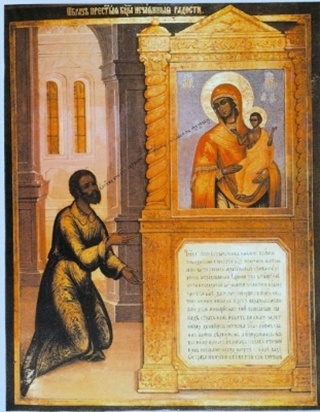 Икона Божией Матери «Нечаянная Радость» названа в память об исцелении некоего грешника через святую икону молитвами Пречистой Богородицы.