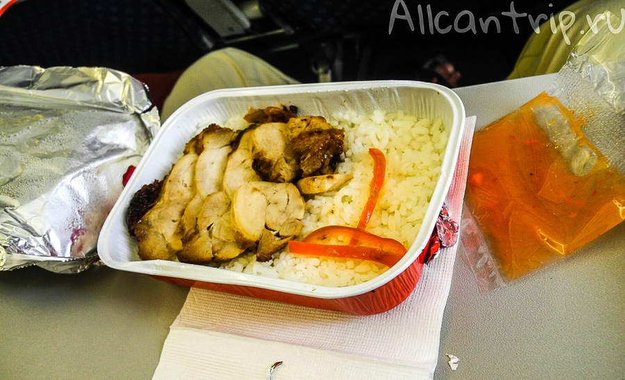 Где-то через 1.5 часа полета раздавали еду (тем, кто заплатил). Так как вегетарианского варианта в меню не было, то еду заказывали только Вове, за 155 руб. принесли бутылку воды и вот это: