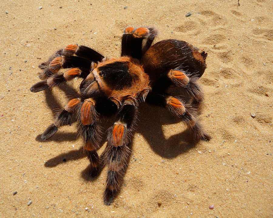 Эти животные представляют группу самых крупных пауков на планете, чемпионом среди которых считается паук голиаф. Его размеры просто поражают воображение – порядка 10 см, а размах лап порядка 28 см. Эти пауки отличаются еще и тем, что их тело покрыто густой шерстью красно-коричневых оттенков. Для человека этот монстр не опасен, а вот его опадающая щетина способна привести к различным аллергическим реакциям.