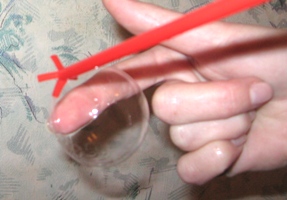 - Достойная альтернатива – соломинка или трубочка для коктейлей. Чтобы шарики получились больших размеров, сделайте в конце трубочки несколько продольных надрезов.