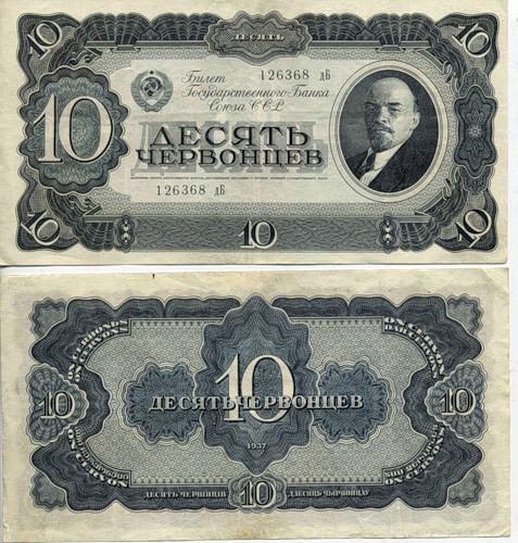 Банковские билеты 1937 года были с портретом Ленина. На них содержалась надпись «Банковый билет подлежит размену на золото». Больше уже никогда такой надписи на деньгах не было.