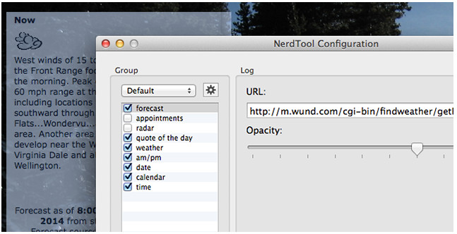 Используйте Geektool или Nerdtool для отображения различной информации, терминальных команд, изображений, текстовых документов и многого другое на вашем рабочем столе. Geektool, пожалуй, имеет больший потенциал, а Nerdtool проще в использовании.