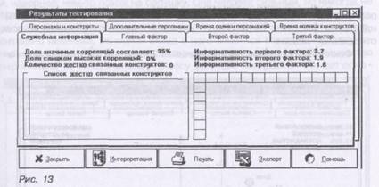 Конструкты, выявленные у Ильи, являются разнообразными. В частно сти, имеются конструкты морально-интеллектуального плана ("подлый", "глу пый"), конструкты, отражающие социально-психологические качества ("от ветственный"), эмоциональное отношение ("спокойный", "заботливый", "нра вится людям"), поведение ("задиристый", "язвительный") и др. Однако, учитывая приведенные комментарии и данные наблюдения за Ильей в про цессе тестирования, следует констатировать, что его конструкты имеют в основном личное и довольно индивидуальное (характерное только для Ильи) содержание. Так, мать - человек ответственный, потому что она делает так, как захочет он. Валера - спокойный, потому что он принимает лидерство Ильи и подчиняется ему. Дима - подлый, потому что из-за него Илья имел неприятность с учителем и т. д. При описании Методики мы указывали на низкую информативность формального анализа конструктов вне контекста психологического консультирования. Пример конструктов Ильи - яркое тому подтверждение.