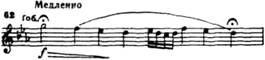 Вместе с тем эта тема полна тревоги, беспокойства. Достигнув вершины, главная партия внезапно обрывается на доминанте. Остановка подчеркнута знаком ферматы.